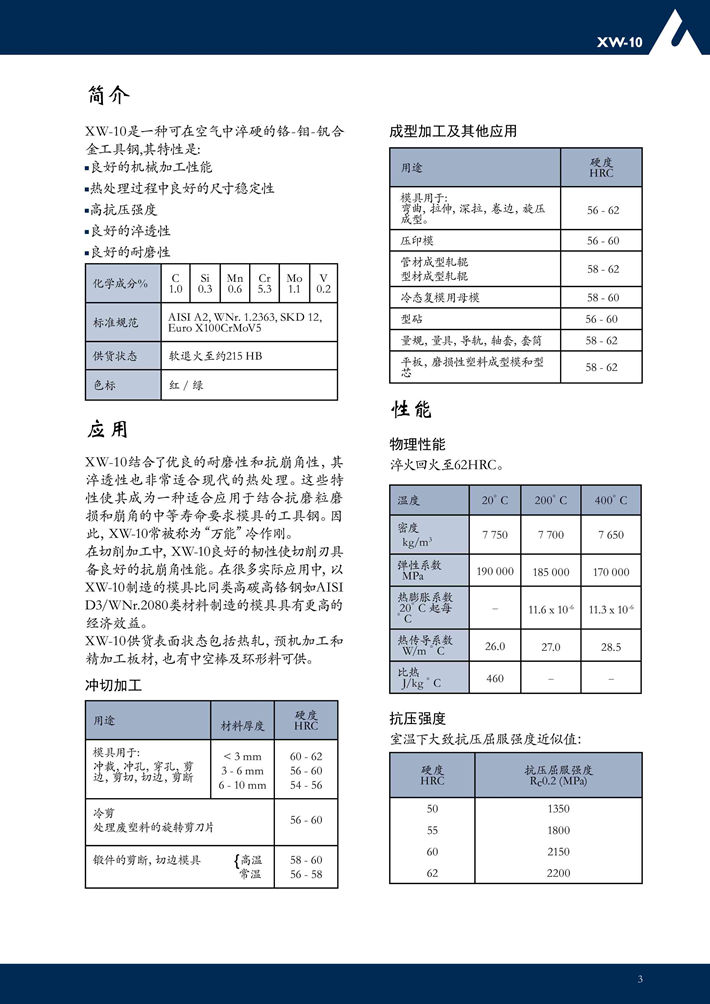 瑞典***XW-10冷作模具鋼:優(yōu)良的淬硬性和耐磨性,出色的尺寸穩(wěn)定性。...