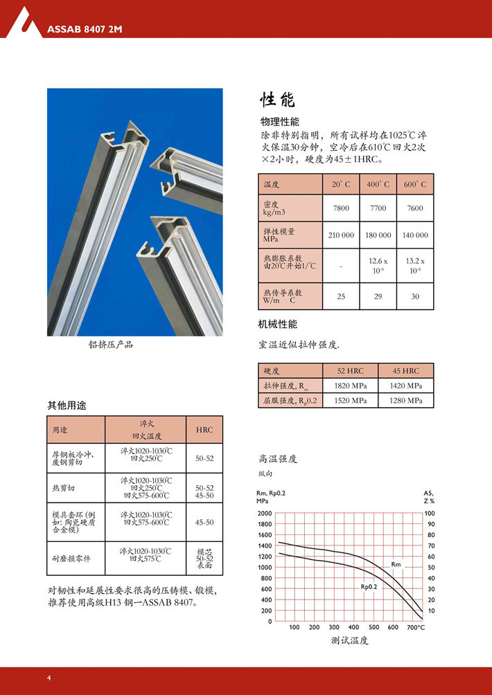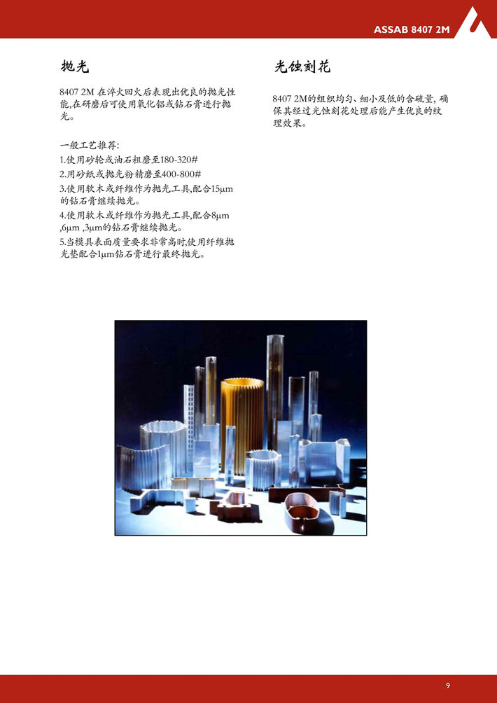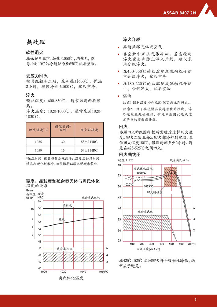 瑞典***8402熱作模具鋼:具有全面優(yōu)良的延展性,韌性,耐磨性,淬硬性和機(jī)加工性能。 8402是通過(guò)特殊的工藝制造的,在傳統(tǒng)制造AISI H13標(biāo)準(zhǔn)中,其一致性和均勻性被證明是*好的...